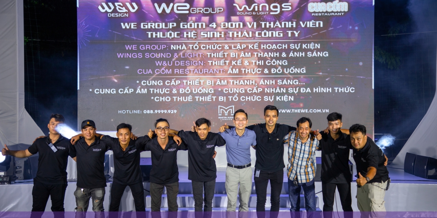 Wings Sound & Light ra đời như một bước tiến chiến lược trong hành trình hoàn thiện hệ sinh thái tổ chức sự kiện của We Group, với sứ mệnh cung cấp và cho thuê thiết bị âm thanh, ánh sáng, trình chiếu chuyên nghiệp cho các chương trình sự kiện lớn – đặc biệt là các sự kiện chính trị, văn hóa – xã hội, hội nghị, hội chợ và sự kiện doanh nghiệp. Ngoài những sự kiện lớn mang tính cộng đồng và doanh nghiệp, chúng tôi cũng mở rộng dịch vụ tới các lễ cưới cao cấp – nơi âm thanh, ánh sáng và nghệ thuật trình chiếu góp phần thể hiện rõ cá tính và câu chuyện tình yêu của từng cặp đôi.